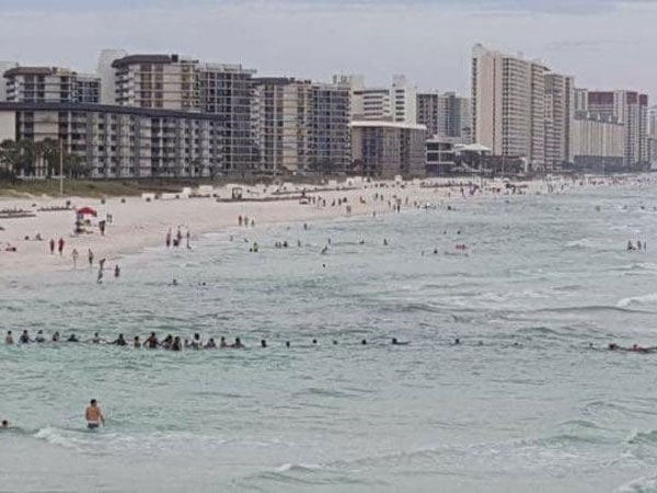 Nine beach-goers, including two children and an elderly woman, were trapped in the current at Panama City Beach in Florida. Bystanders on the shore saw them yelling and waving their arms, and they jumped into action.