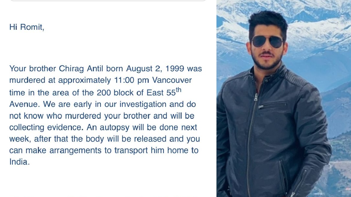 The death of a 24-year-old Indian national named Chirag Antil, who was murdered late on Friday night in Vancouver, British Columbia, has been expressed with sorrow by the Indian government.