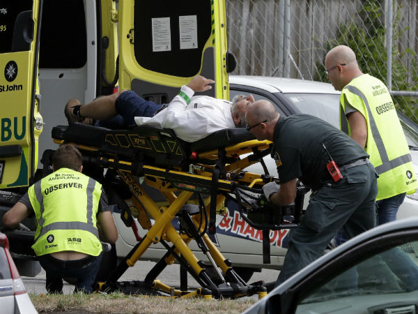 Christchurch: Ambulance staff take a man from outside a mosque in central Christchurch, New Zealand. PTI