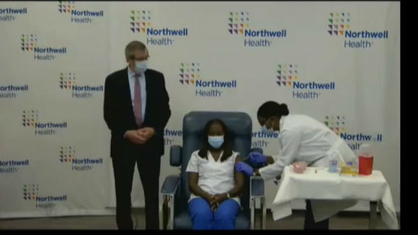 New York State Governor Andrew Cuomo said the pandemic has been "horrific." "It was a modern-day battlefield and that's why the word heroes is so appreciate for what you did. The vaccine is the weapon that will end the war. It is the beginning of the last chapter of the book," Cuomo said just before Lindsay was given the vaccination.