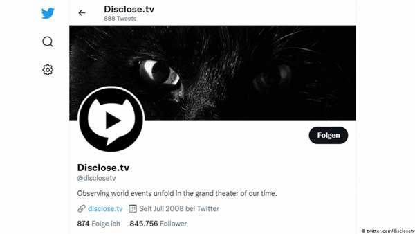 Berlin, Feb 09: Germany-based Disclose.TV has millions of followers – on Twitter, Facebook, YouTube, and far-right social media networks like Gettr and Gab. What began as a conspiracy forum for swapping UFO stories has turned into a popular news aggregator dispensing conspiracy theories and anti-vaccine content, unique not only in its influence but also the way it operates.