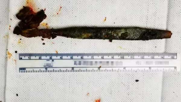 The patient, who is 51-year-old man, identified as Li, was admitted to the hospital for abdominal pain in late June, and a CT scan revealed a mysterious item in his duodenum, Xinhua news agency reported.