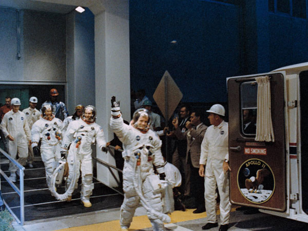 Armstrong, Aldrin and Collins took off for the Moon aboard July 16, 1969.