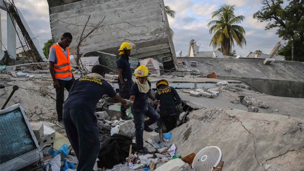 Les Cayes (Haiti), Aug 16: The death toll from a 7.2-magnitude earthquake in Haiti climbed to 1,297 on Sunday, a day after the powerful temblor turned thousands of structures into rubble and set off franctic rescue efforts ahead of a potential deluge from an approaching tropical storm.