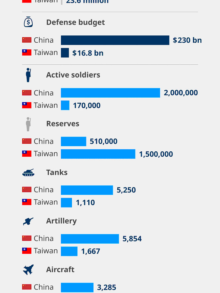 But while the 2021 gross domestic product (GDP) per capita in China was $12,259 (€12,055), in Taiwan it was almost three times as high at $33,775, according to data from the International Monetary Fund.
