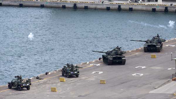 Fenggang, Aug 09: Taiwan's military began a live-fire artillery drill Tuesday simulating a defence of the island against an attack after days of massive Chinese military exercises, an AFP journalist at the site of the exercise said.