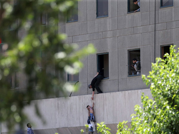 Iranian news agency Tasnim reported that four persons had been taken hostage by gunmen in the Parliament building's upper floors.