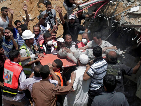 UN Secretary General Ban Ki-moon Sunday strongly condemned the killing of at least 10 Palestinians in shelling outside of a UN-run school in Gaza, which is offering shelter to thousands of Palestinian civilians, saying that "the attack is yet another gross violation of international humanitarian law".