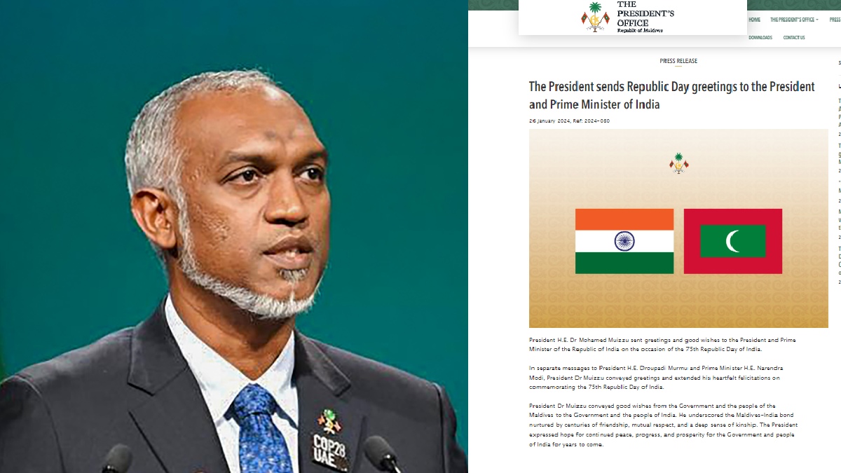Amid the ongoing diplomatic row between New Delhi and Male, greetings were extended to India on the occasion of the 75th Republic Day by Maldives President Mohamed Muizzu.