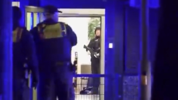 Gregor Miesbach, who lives within sight of the building, was alerted by the sound of shots and filmed a figure entering the building through a window. Shots can then be heard from inside. The figure later apparently emerges from the hall, is seen in the courtyard and then fires more shots inside.