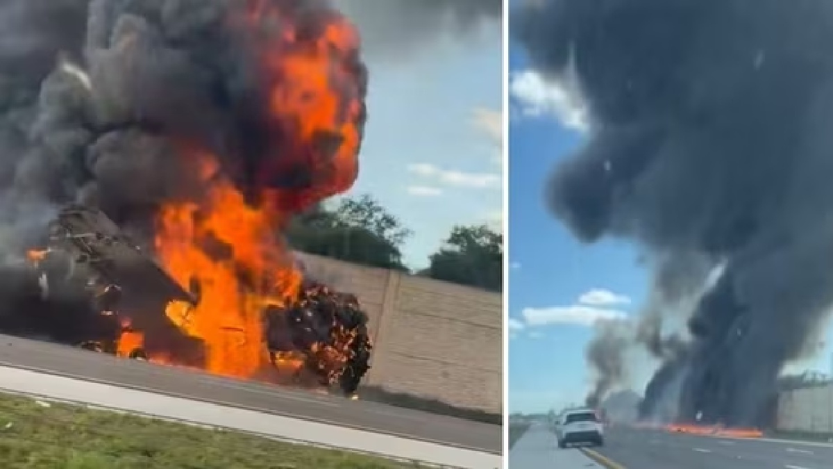 The crash occurred near the Pine Ridge Road exit in Collier County, causing a massive plume of black smoke to rise into the air and halting traffic.