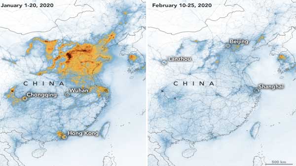 Beijing, Mar 02: Satellite images by NASA and European Space Agency have shown a significant decline in pollution levels over China, partly due to the economic slowdown following the deadly coronavirus outbreak, the US space agency has said.