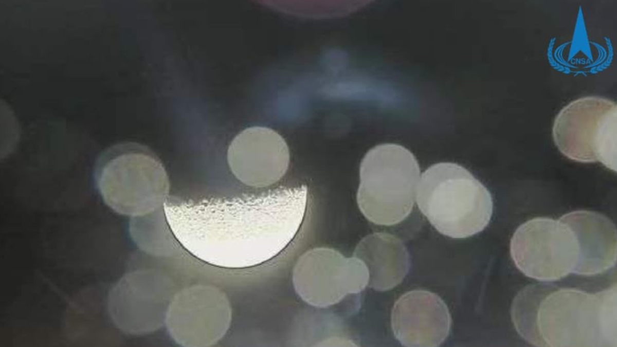 The first image showed the sun as a bright spotlight; the second was that of a sparkling half moon while the third image showed the moon on the left and the sun on the right, according to images shared by CNSA online.