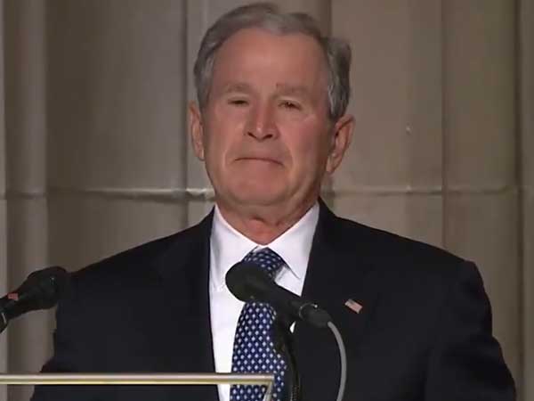President for president: George W Bush breaks down while paying tributes to George H W Bush