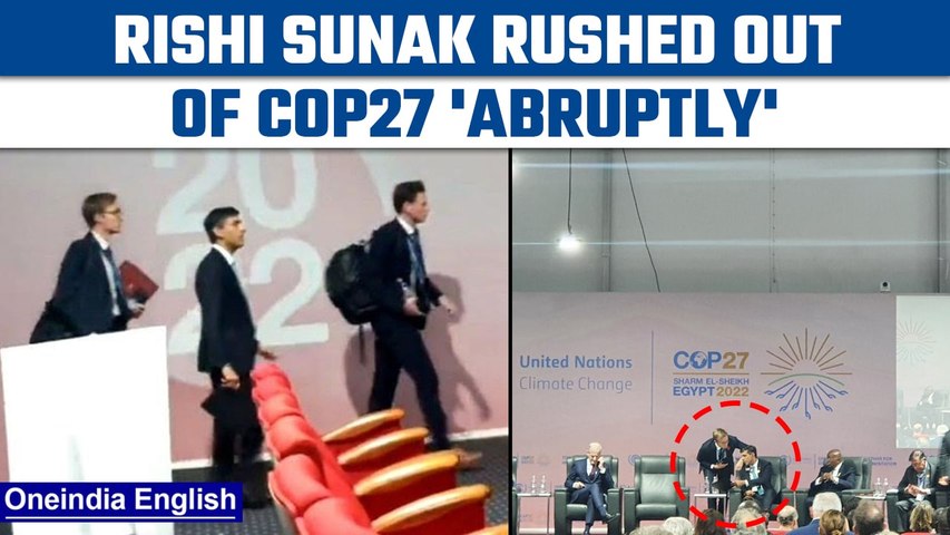 Sharm el-Sheikh, Nov 08: British Prime Minister Rishi Sunak on Monday made a dramatic exit when his aides rushed him out during an ongoing session of the COP27 summit in Sharm el-Sheikh, Egypt. There is no word yet on the reason for the British PM's abrupt exit from the event which left everyone surprised and clueless.