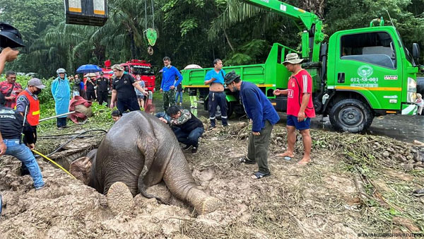 Bangkok, Jul 15: Wildlife rescuers in Thailand on Wednesday saved a pair of elephants, a mom and her baby, after they both fell into a manhole.