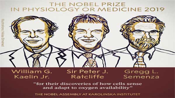 Washington, Oct 07: Three scientists who studied how cells determine their oxygen levels have been awarded the 2019 Nobel Prize in Physiology or Medicine. William G. Kaelin, Jr. of Harvard University, Sir Peter J. Ratcliffe of Oxford University and Gregg L. Semenza of Johns Hopkins University were jointly awarded the prize.
