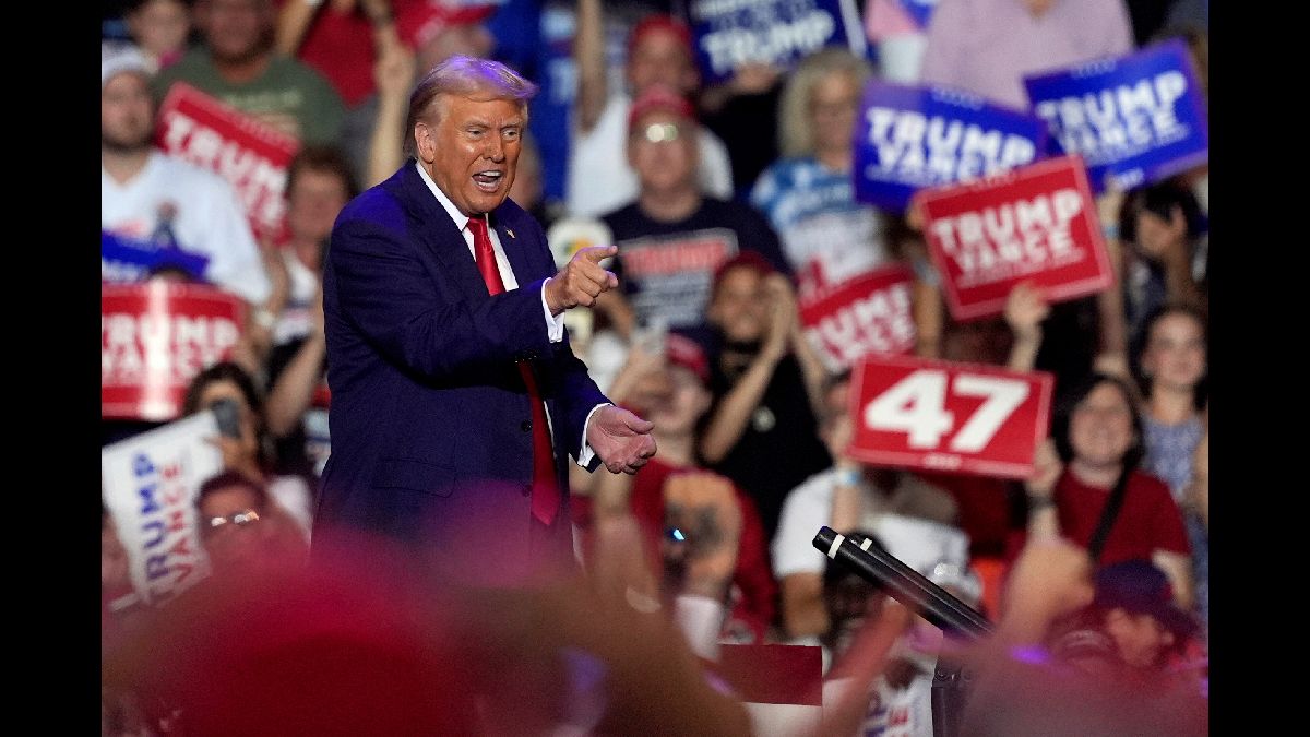 Donald Trump held his first outdoor rally since last month's assassination attempt in North Carolina, focusing on national security. The event is part of his weeklong tour to divert attention from the Democratic National Convention in Chicago.