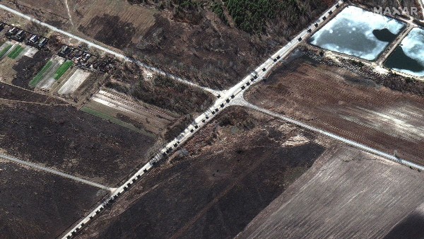 Ukraine crisis: Terrifying satellite images show 40 mile-long Russian convoy outside Kyiv