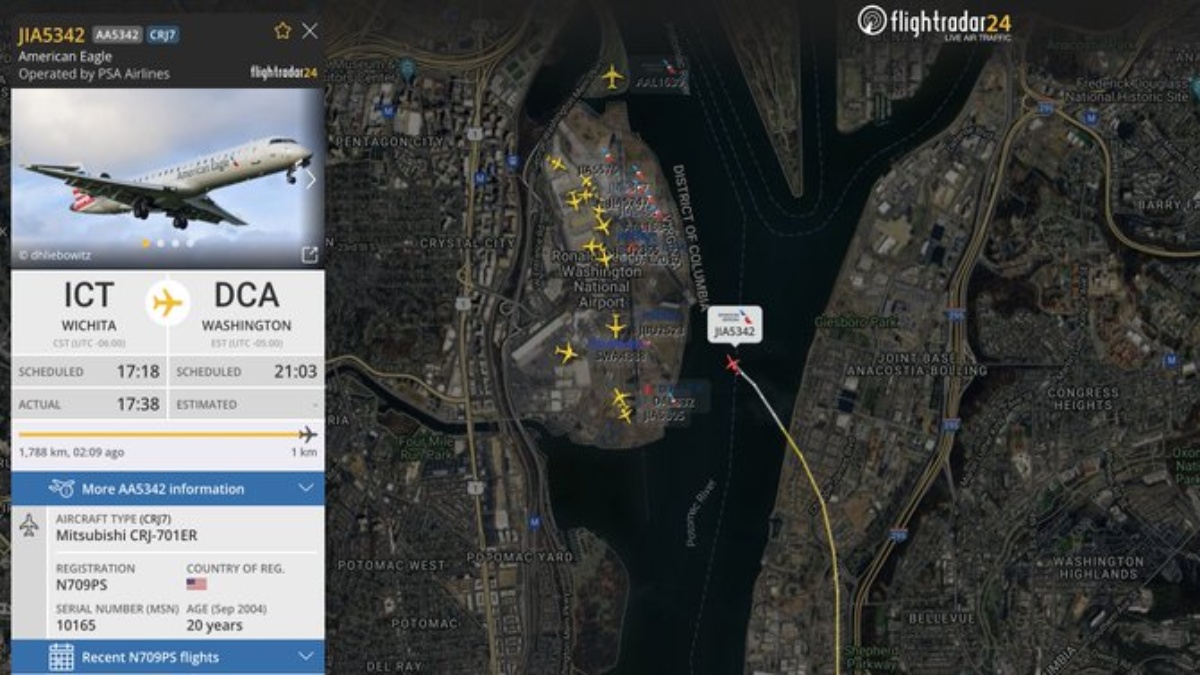 A PSA Airlines Bombardier CRJ700 regional jet, operating as American Airlines Flight 5342, collided midair with a U.S. military Sikorsky H-60 helicopter while approaching Runway 22 at Reagan Washington National Airport (DCA) around 9 p.m. local time on Wednesday, the Federal Aviation Administration (FAA) confirmed. The flight had departed from Wichita, Kansas earlier in the evening.