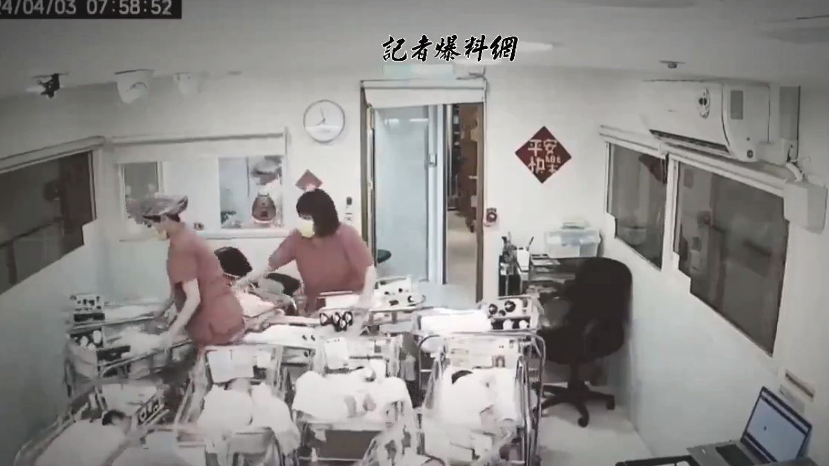 In the footage, nurses are seen taking swift action to protect newborn babies from the shaking.