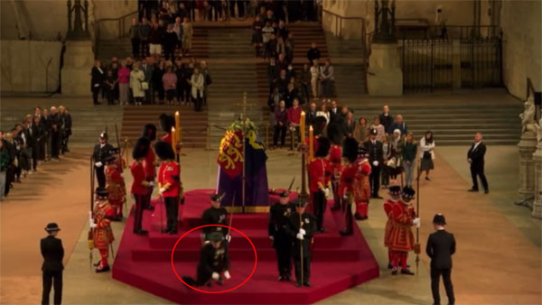The Queen's coffin has been placed on a raised platform - or catafalque - and each corner is guarded through the day by a vigil of units from the Sovereign's Bodyguard, the Household Division or Yeoman Warders of the Tower of London. Hundreds of thousands of mourners are queuing up to pay their final respects to the monarch.