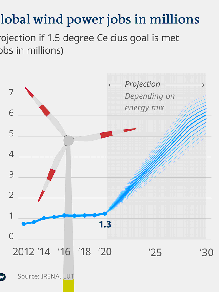In North and South America, the number of wind jobs is also increasing, with some 120,000 jobs now registered in the US, 40,000 in Brazil and 20,000 in Mexico. In Africa, wind energy isn't viable everywhere, but there too the industry employs some 40,000 people.