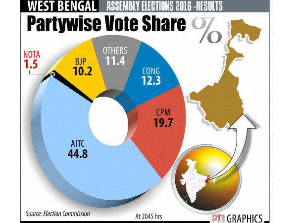 West Bengal polls 2016: Parties' vote-shares and comparison with 2011 & 2014 figures