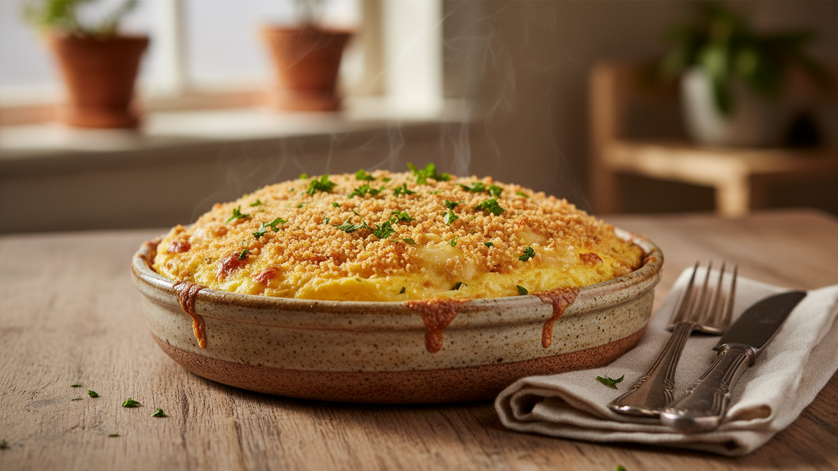 Friar's omelette brings together simple eggs, fruit, butter and breadcrumbs in one baked dish. With a soft centre, a crisp crumb topping and a light sugar finish, it is a classic Scottish recipe that fits both as a sweet breakfast and as a homely dessert.