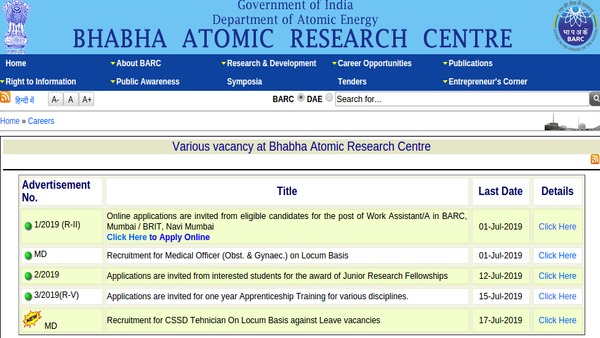 Steps to apply for BARC jobs: