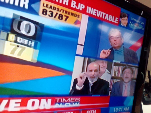 Mumbai, Dec 23: Times Now Editor-in-Chief Arnab Goswami on Tuesday mocked Congress spokesperson Sanjay Jha on a live programme on the results of the just-concluded assembly elections in Jammu and Kashmir and Jharkhand by asking him whether he became a fan of late Australian cricketer Sir Don Bradman instead of party vice-president Rahul Gandhi after seeing the Congress's unimpressive show in both the states.
