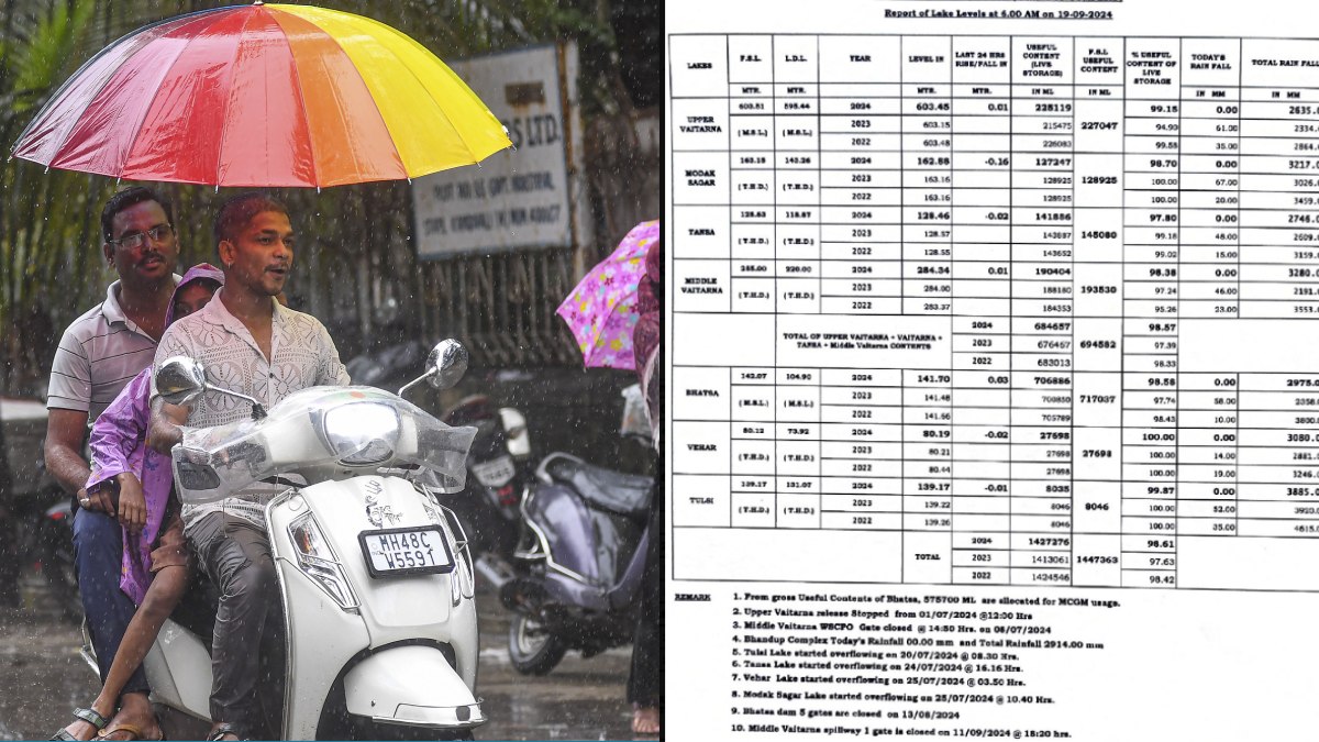 The lakes that supply Mumbai are Tulsi, Tansa, Vihar, Bhatsa, Modak Sagar, Upper Vaitarna, and Middle Vaitarna. Currently, Modak Sagar is 98.70 per cent full, Tansa is 97.80 per cent, and Vihar Lake has reached 100 per cent. The other lakes are also almost full: Middle Vaitarna is at 98.38 per cent, Upper Vaitarna at 99.15 per cent, Bhatsa at 98.58 per cent, and Tulsi at 99.87 per cent.