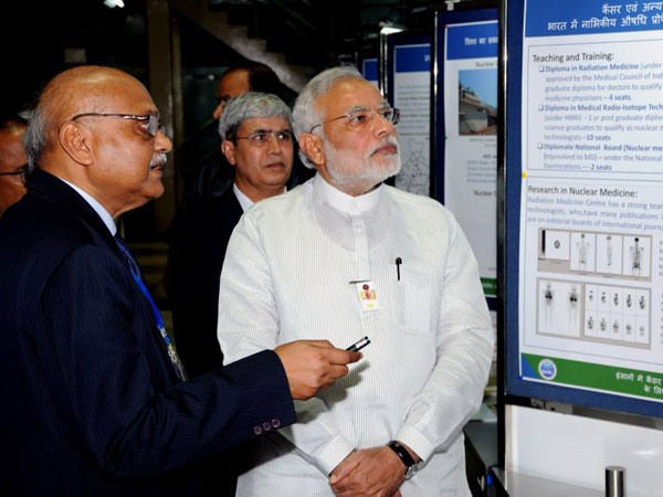 Mumbai, July 22: Prime Minister Narendra Modi on Monday visited the Department of Atomic Energy (DAE) here, the first time after assuming the top office in May. He spoke to Dr RK Sinha, secretary of the DAE and other top officials at the Bhabha Atomic Research Centre (BARC) on India's atomic energy programme, DAE's extensive research and development and education programmes and DAE's contribution in fields like healthcare, especially cancer treatment, food security, solid waste management and water purification.