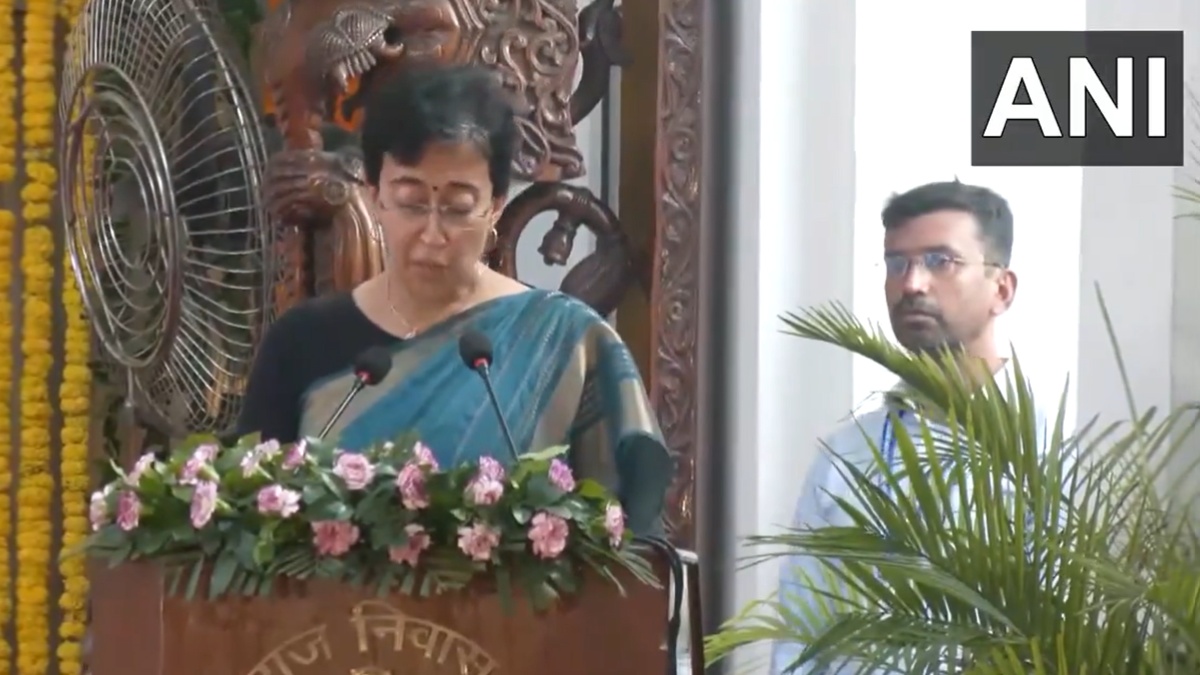 Atishi took her oath of office at Raj Niwas, administered by the Lieutenant Governor.