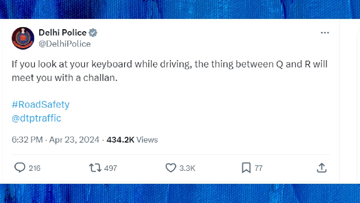 Numerous posts were made as part of this trend. The Delhi Police recently participated in this meme trend by using it to caution against texting while driving in a clever tweet. On April 23, a post was shared by Delhi Police's official handle, stating, "If you look at your keyboard while driving, the thing between Q and R will meet you with a challan."