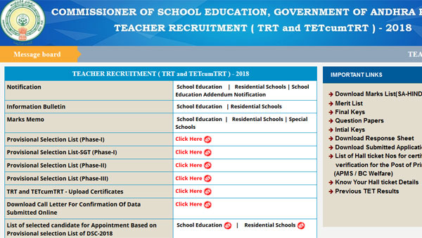 The recruitment drive is being held to fill the teaching posts that were notified last year. The results are available on apdsc.apcfss.in.