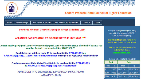 New Delhi, Aug 05: The AP EAMCET allotment order 2019 has been released . The same is available on the official website.P E