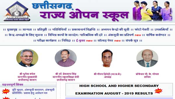 The results were declared by the Chhattisgarh State Open School Board. The exams were held on August 2019.