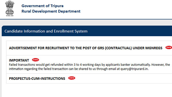 New Delhi, Aug 15: Gram Rozgar Sahayak jobs for 10th pass candidates have been released by the Tripura Government. More details are available on the official website.