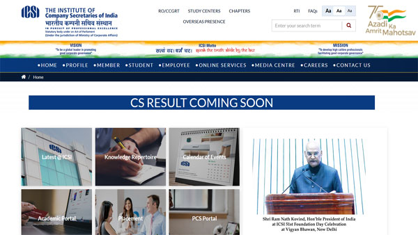 ICSI CS result for the Professional (Old and New Syllabus) will be declared at 11 am tomorrow. The CS Executive (Old and New Syllabus) and CS Foundation course results will be declared at 2 pm and 4 pm on October 13 respectively.