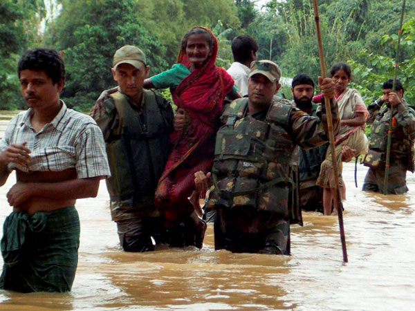 Army jawans rescue flood-affected people at Chaigaon