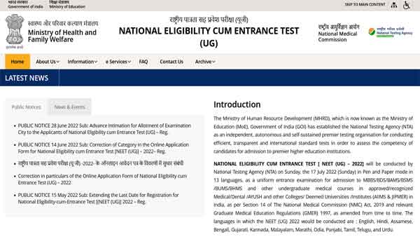 NEET UG 2022 will be held on July 17 and the same is scheduled to be held in pen and paper mode. The entrance exam will be held offline in a single shift from 2 pm to 5.20 pm. The duration of the exam would be of 3 hours and 20 minutes.