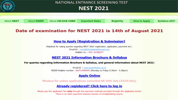 NEST 2021 exam new date announced: Apply until July 15