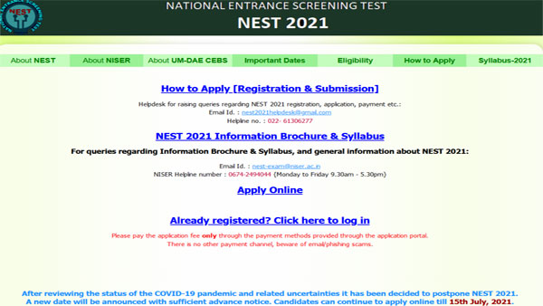 New Delhi, June 05: The NEST 2021 exam has been postponed. More details are available on the official website.