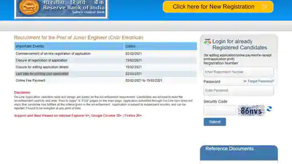 New Delhi, Feb 02: As part of the RBI JE Recruitment 2021, the Reserve Bank of India has invited online applications fro the recruitment of Junior Engineer. More details are available on the official website.