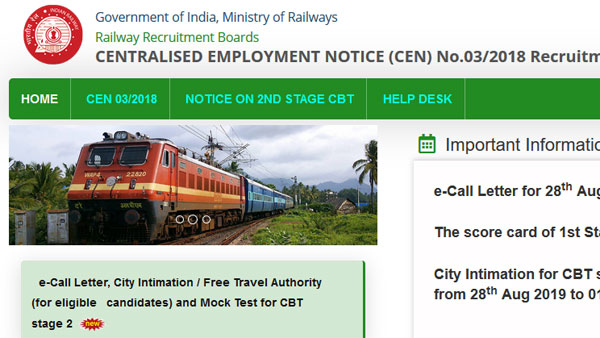New Delhi, Aug 26: The RRB JE CBT 2 admit card 2019 has been released. The same is available on the official website.