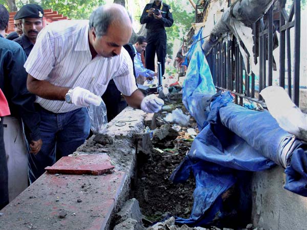 NSG experts collecting samples after a live bomb was found at Gandhi Maidan in Patna on Tuesday.
