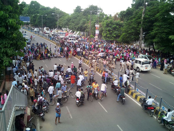 Patna, Sept 18: Students of Patna Women's College on Friday, Sept 18 staged a protest at Bailey road, Patna, against the male teacher, Sanjay Datta of Department of Mass Communications and college Principal sister Marie Jasie for not supporting the girl, who had charged him of sexual harassment.