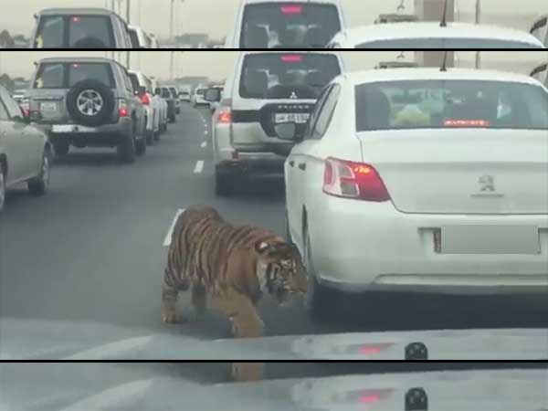 Tiger spotted dodging busy traffic on Doha road - Video goes viral