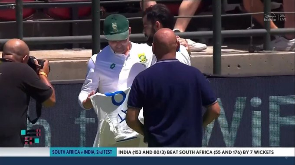 After the match, India's stand in captain, Virat Kohli, walked to Dean Elgar to present him a t-shirt signed by Team India as a gesture of sportsmanship. Elgar was greeted by warm hugs from Indian players when he stepped in and went out of the ground during his last match.